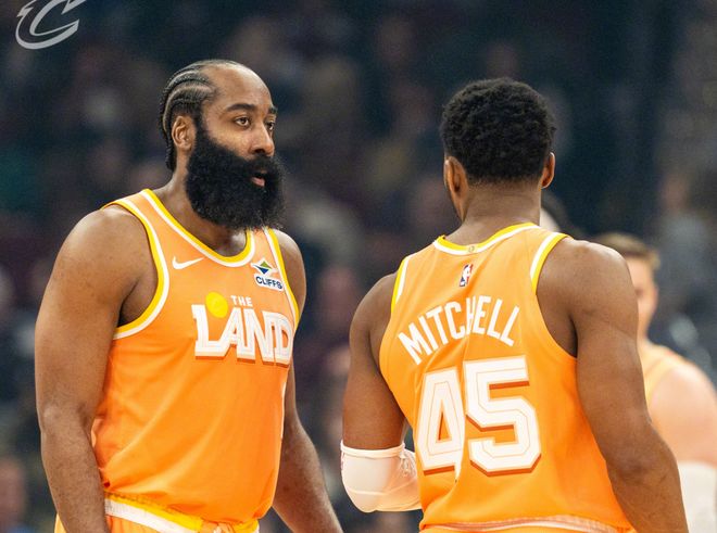 骑士四连胜!哈登26分7助带动全队,米切尔轰42分,双核实现互补