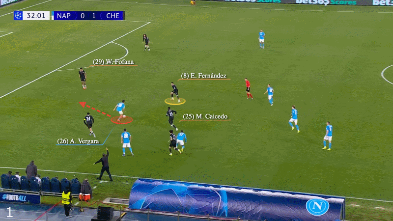 还有一月切尔西3-2战胜那不勒斯比赛中主队的首粒进球。丢球时,凯塞多被落在球前,但费尔南德斯位置正好可以封堵安东尼奥-韦尔加拉。然而他却后退了一步,大概是担心可能的传球,让韦尔加拉带球直面韦斯利-福法纳。凯塞多奋不顾身的铲球未能救险,福法纳被过,结果是进球: